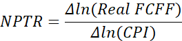 The Net Pass-Through Ratio (NPTR) is defined as the elasticity of nominal free cash flow with respect to CPI: